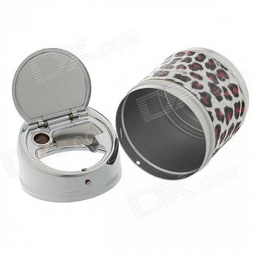 635BF Leopard Print Stainless Steel Automatic Spring Lid Ashtray - Silver + Brown + Black