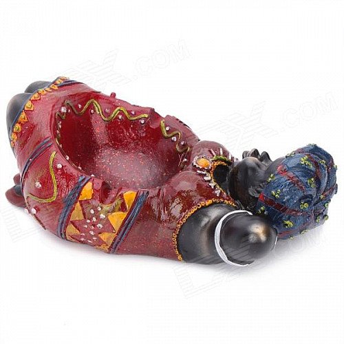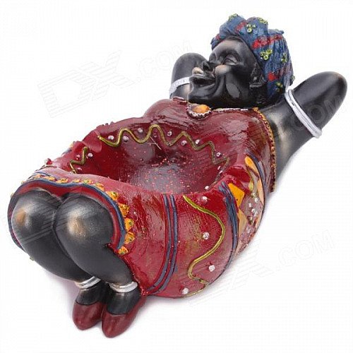 African Girl Style Resin Cigarette Ashtray - Black + Red