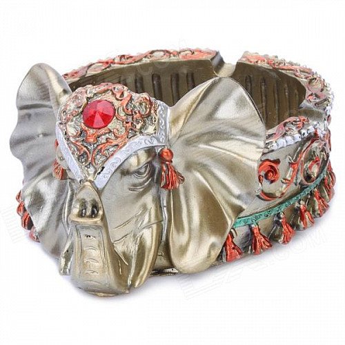 Auspicious Elephant Head Pattern Resin Cigarette Ashtray - Golden