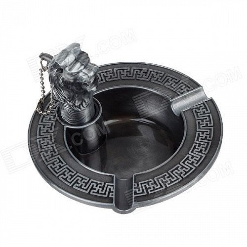 Celtic Collectible Tribal Decoration Statue Figurine Ashtray + Lighter Set - Grey (Fierce Lion)