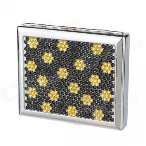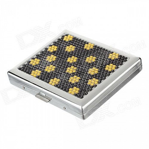 Clamshell Double-Sided Rhinestone Studded Aluminium Alloy Cigarette Case - Sliver + Black + Yellow