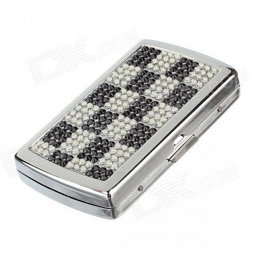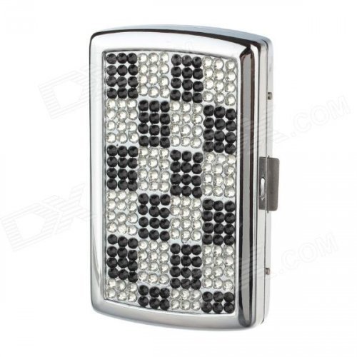 Clamshell Double-Sided Rhinestone Studded Aluminium Alloy Cigarette Case - Sliver + Black
