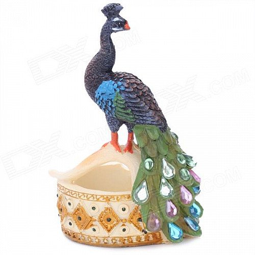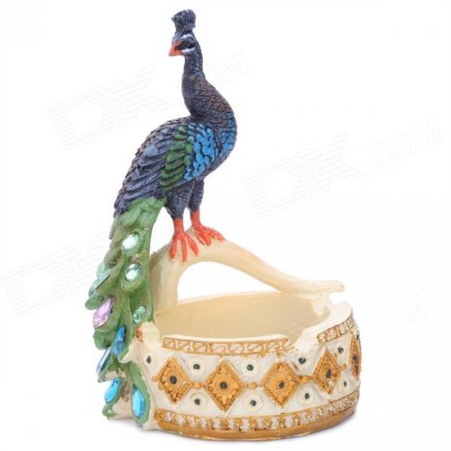Craft Peacock Style Painted Diamond Resin Cigarette Ashtray - Yellow + Green + Blue