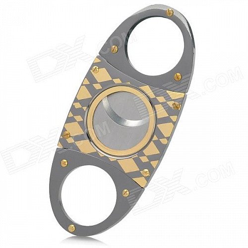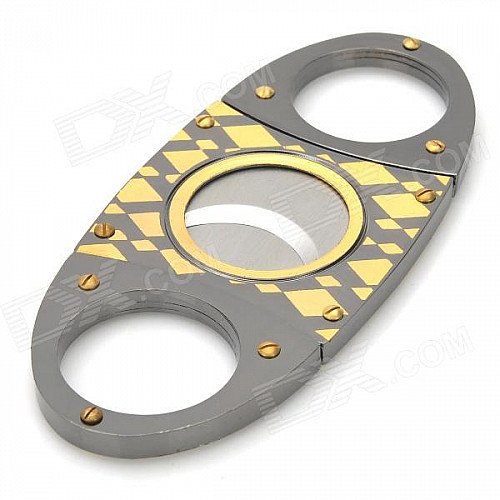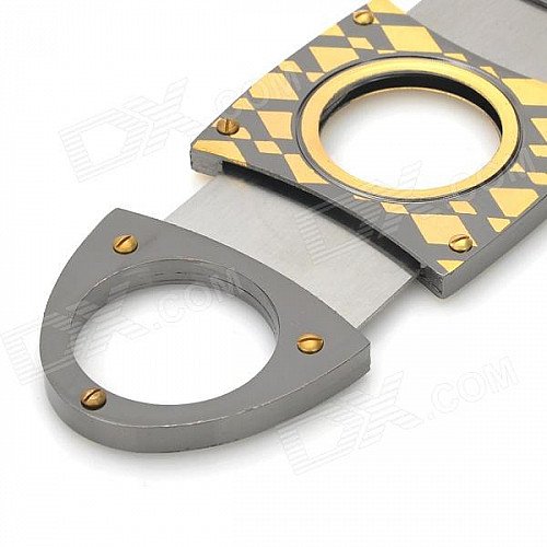 Double Blades Stainless Steel Pocket Cigar Cutter Knife - Black + Golden