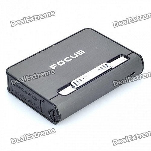 Focus Black Nickel Wiredrawing Cigarette Case Dispenser with Butane Jet Torch Lighter (Holds 12)