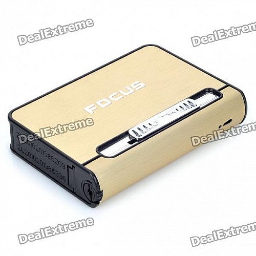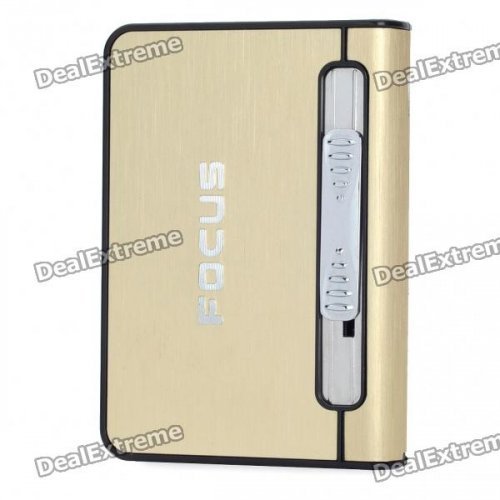 Focus Gold Wiredrawing Cigarette Case Dispenser with Butane Jet Torch Lighter (Holds 12)