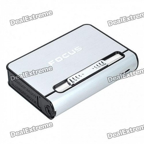 Focus Silver Wiredrawing Cigarette Case Dispenser with Butane Jet Torch Lighter (Holds 12)