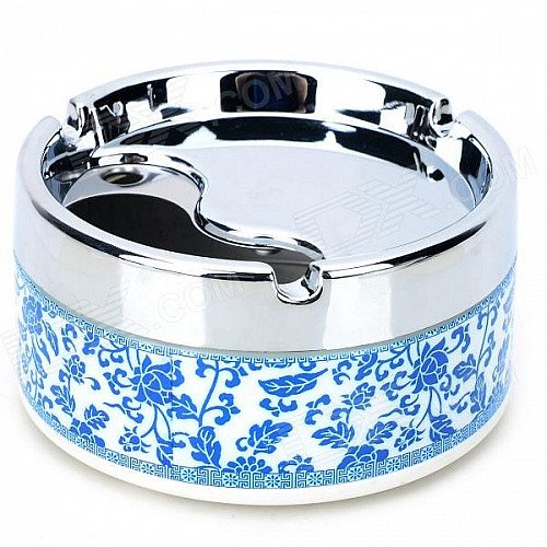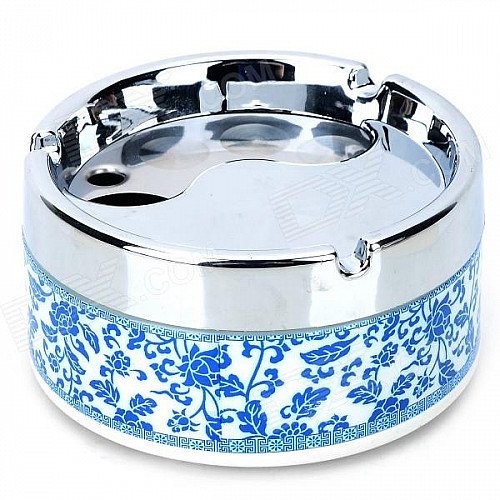 H2WY Blue + White Porcelain Style Stainless Steel + Plastic Ashtray - Blue + Silver + Multicolored