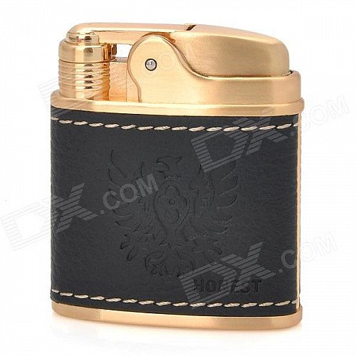 HONEST 2-in-1 Genuine Leather Zinc Alloy Butane Jet Lighter / Ashtray Set - Golden + Black
