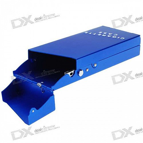 Lady's Aluminum Alloy Cigarette Case - Blue (Holds 10)