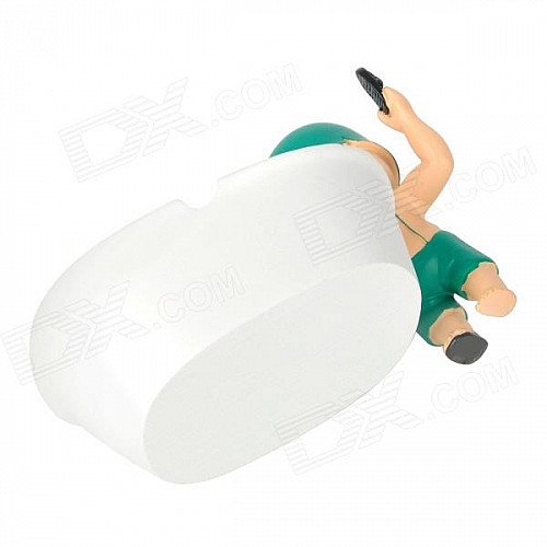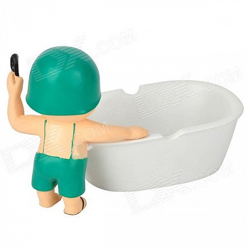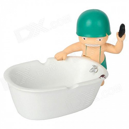 Little Soldier Fighting with Cockroach on Bathtub Style Ashtray - Green + White + Beige
