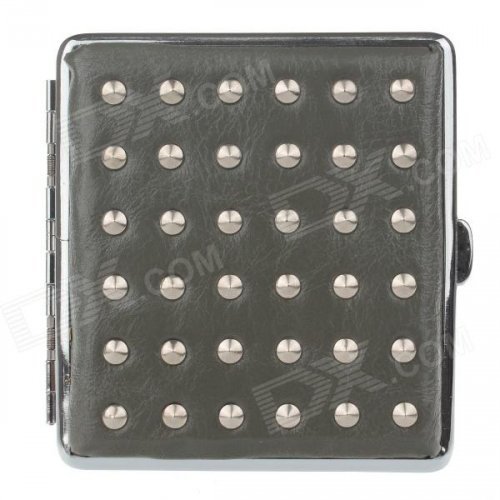 PU Leather + Stainless Steel Double-sided Rivet Cigarette Case - Gray + Silver (Holds 20 PCS)