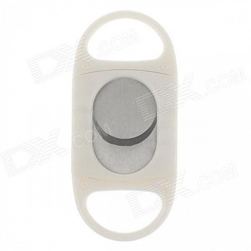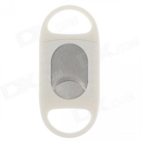 Single Blade Plastic + Stainless Steel Cigar Cutter Knife - White + Silver