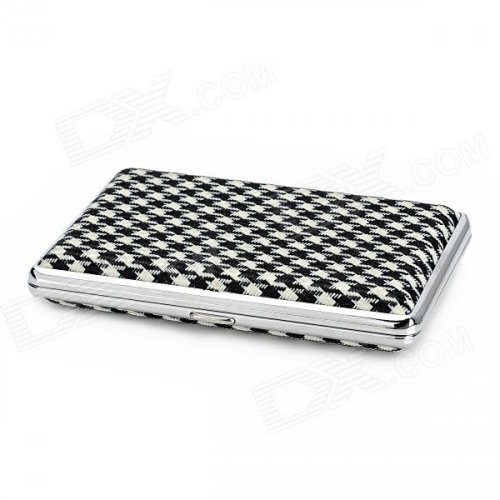 Stylish Stainless Steel + PU Leather Cigarette Case - Black + White + Silver