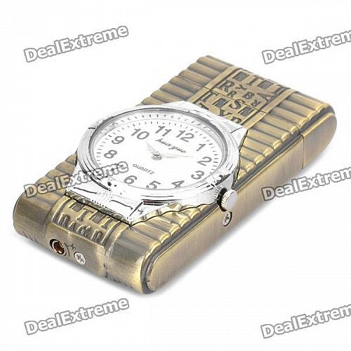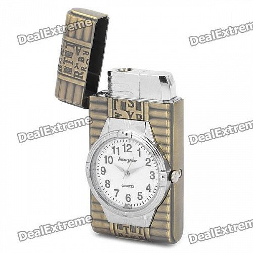 Stylish Cool 2-in-1 LED Colorful Light Metal Watch + Windproof Gas Lighter - Bronze ( 1 x SR626W)