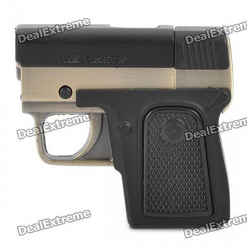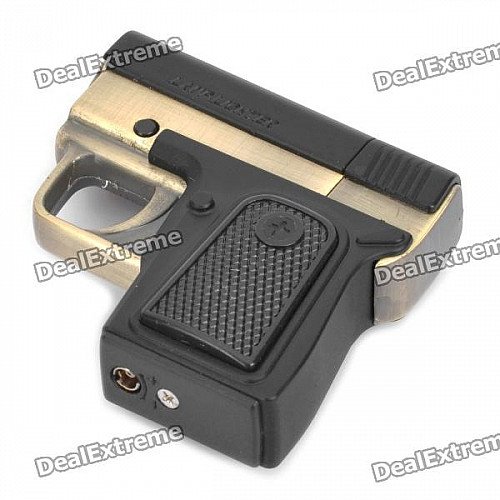 Stylish Cool Gun Style Windproof Gas Lighter with UV Money Detector - Black + Bronze