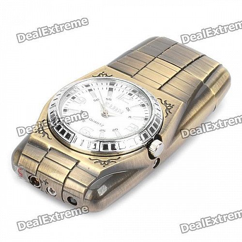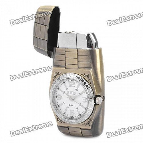 Stylish Cool Metal Windproof Gas Lighter w/ Watch + LED light + UV Lamp - Bronze (1 x SR626W)