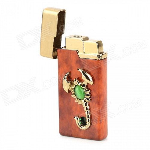 Stylish Scorpion Decorated Butane Refillable Windproof Lighter w/ LED Light - Brown + Golden