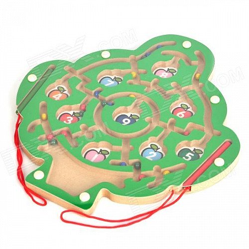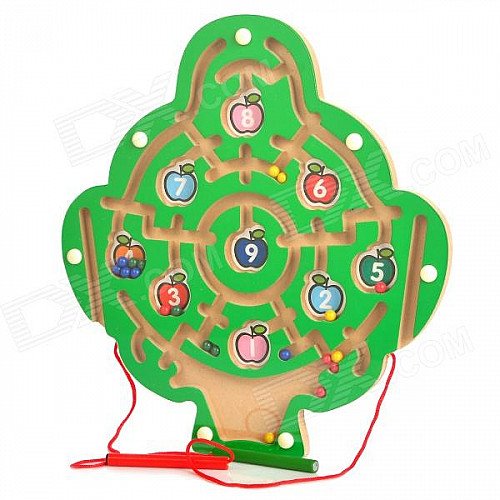 Digital Fruit Tree Style Wooden Magnetic Maze Toy - Green
