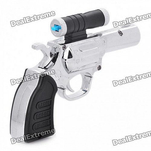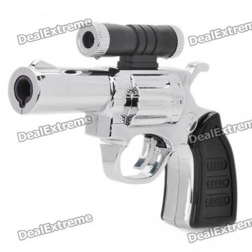 Gun Pistol Style Electric Shock Butane Torch Lighter with Red Laser Light (3 x LR44)