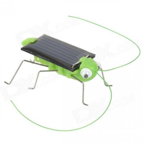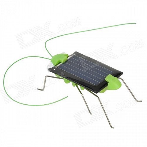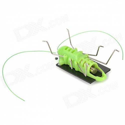 The novel solar powered locust is powered by solar energy no battery required. When exposed to sunlight, it can start its mini-engine by shaking itself as if looking for food. The solar powered locust is also a good teaching aid to provide students with some basic knowledge about solar energy and save our earth using green power.