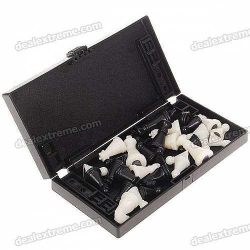 Portable Mini Magnetic Chess Game Set in Folding Box - Black + White