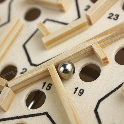 Wood Education Bead Rolling Maze Puzzle Game - Light Yellow + Black