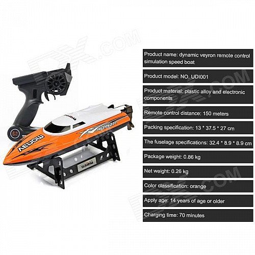 UDI Wireless Remote Control Boat / Speed Boat Shatterproof Model - Orange + White