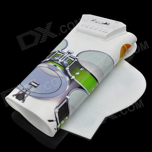 W1008 Portable Roll-up USB Drum Kit with Drum Sticks - White + Green + Yellow
