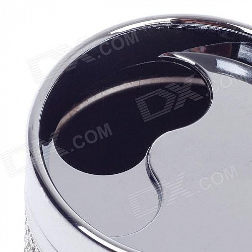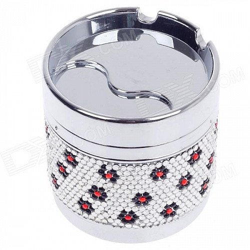 Zinc Alloy Flower Pattern Rotary Cover Ashtray w/ Rhinestone Decoration - Silver + Black + Red