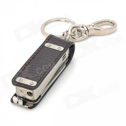 HONEST Genuine Leather + Stainless Steel Butane Lighter w/ Knife / Keychain - Brown + Silver
