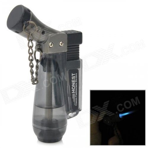 HONEST Windproof Plastic Butane Jet Torch Lighter w/ Cap - Black + Grey