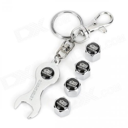 INFORMYI YFY-012 Gas Valve Caps w/ Wrench Keychain - Silver + Black
