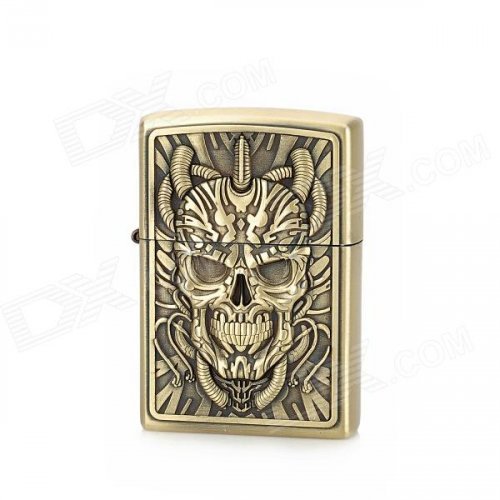 KANTAI Chain Skull Pattern Copper Zinc Alloy Kerosene Oil Lighter - Bronze