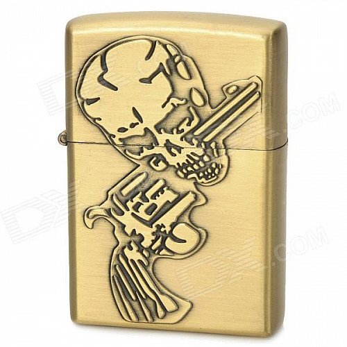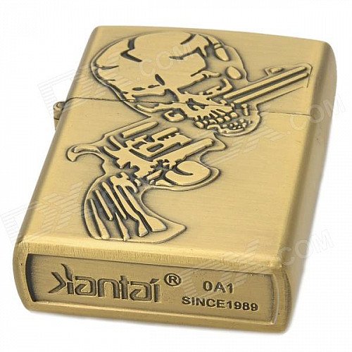 KANTAI Pistol + Skull Pattern Copper Zinc Alloy Kerosene Oil Lighter - Bronze