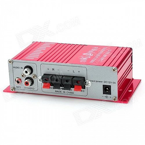 Kentiger TZ-2002 2-Channel Hi-Fi Car Stereo Audio Amplifier w/ MP3 / DVD / VCD Input - Red + Silver