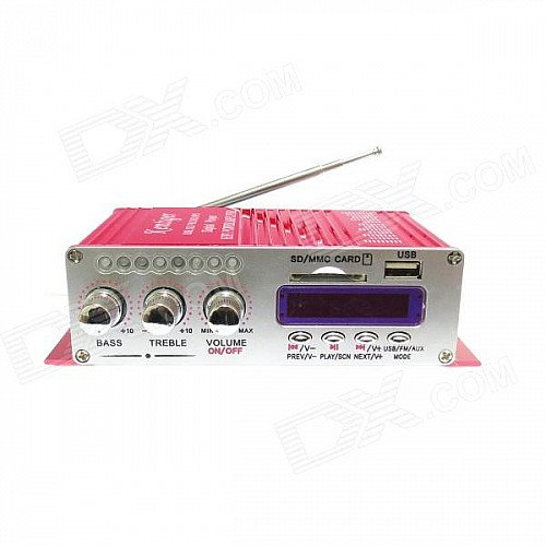 Kinrener HY502 160W 2-CH Hi-Fi Amplifier MP3 Player w/ FM / SD / USB for Car / Motorcycle - Red