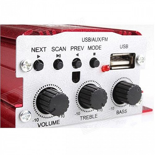 Kinrener MA700 12V 500W 2-Channel Bass / Treble Car Amplifier HiFi w/ USB FM MP3 - Red