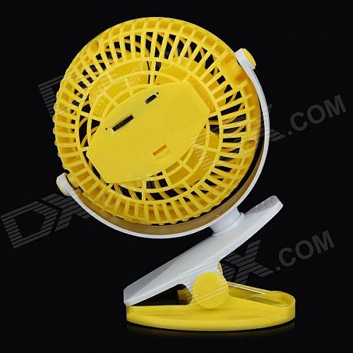 Li Shuo F-130 360 Degrees Rotation Mini Rechargeable 4-Blade Fan w/ Clip - White + Yellow