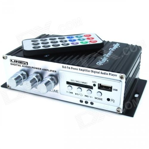 M306 digital power amplifier: imported embedded control chip system, first-class quality, good sound, increase the treble bass adjustment function, large power, high dynamic, powerful voice, full, wide field open, powerful bass, showed considerable thickness, the voice is very magnetic, sound smoothness good, full sound, high frequency performance, especially high frequency, brightness, suitable for long time to listen to, if there is a strong sense of three-dimensional, open wide sound field, sound clear, full of warm, good stripping sense let sound rich being transparent, overheating product line with over-current, output short circuit protection function USB decoding. Products built-in player, support MP3, WMA format music player, with memory function, seven built-in EQ function, with the distance of 15 meters remote control function, is very convenient to use. The real 2 x 25W stereo submersible design circuit with high sensitivity; better sound effects! Play high light, sweet moisture, melodious sound, very resistant to. Products imported capacitor array as a power couple, to make the sound more details, start indicator display; and pre amplification, can be matched with the computer is applied, the family living room applications, mobile phone, CD, VCD, DVD, digital audio signal input MP3, automotive applications, the use of a wide range of applications