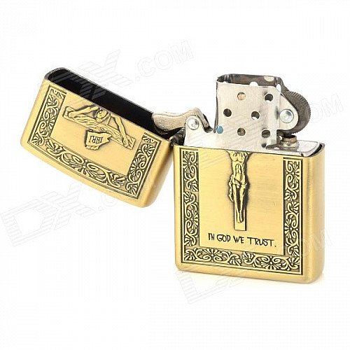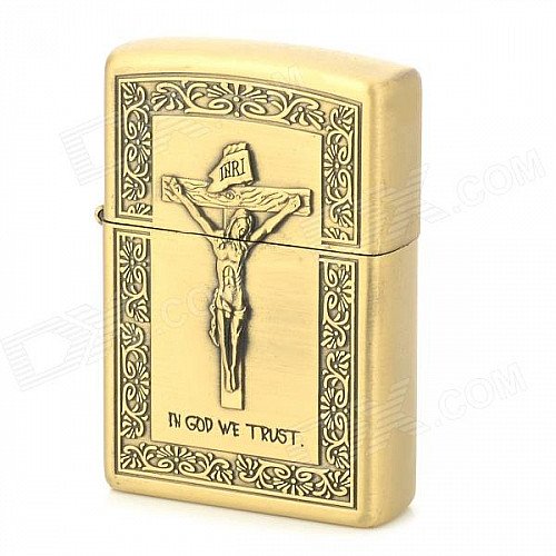 LiTian 01A Jesus Christ Pattern Zinc Alloy Yellow Flame Kerosene Oil Lighter - Brass