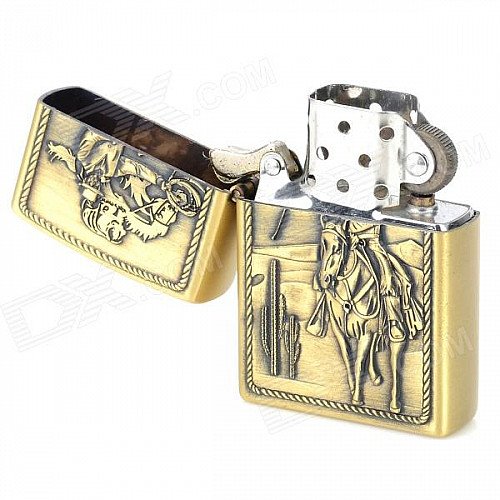 LiTian 01A Knight Pattern Copper Zinc Alloy Yellow Flame Kerosene Oil Lighter - Bronze
