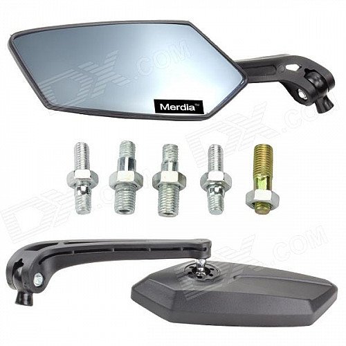 Merdia MPHJ001 Rhombus Style Motorcycle Anti-Glare Back Rearview Mirror - Black + Light Blue (Pair)