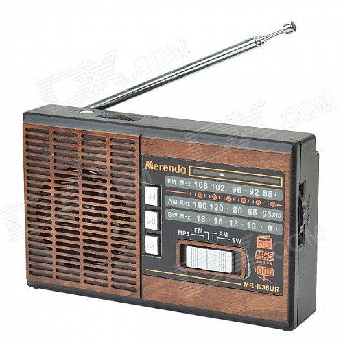 Merenda MR-K36UR 3-Band FM / AM / SW Radio w/ TF / MP3 Player Function - Black + Wooden
