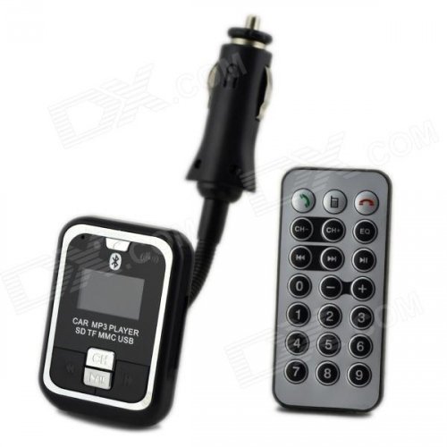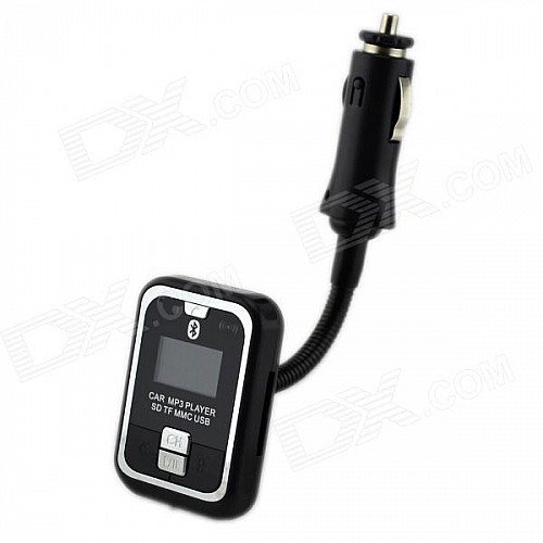 1" LCD Flexible Metallic Hose Bluetooth Handsfree Car Kit w/ FM Transmitter - Black
