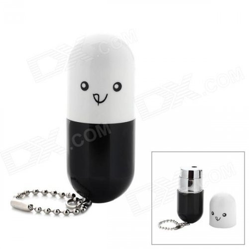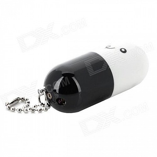 102-3 Capsule Style Creative Butane Gas Lighter w/ Keychain - Black + White