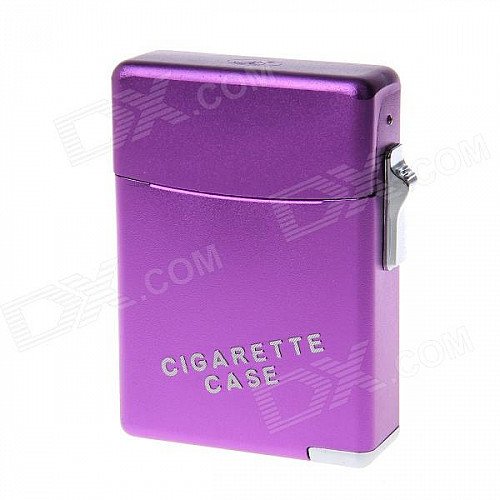 2-in-1 Zinc Alloy Orange Flame Butane Gas Lighter - Purple