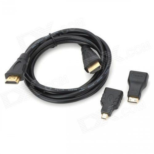 3-in-1 HDMI Male to HDMI Male Cable + HDMI Female to Micro HDMI / Mini HDMI Male Adapters - Black