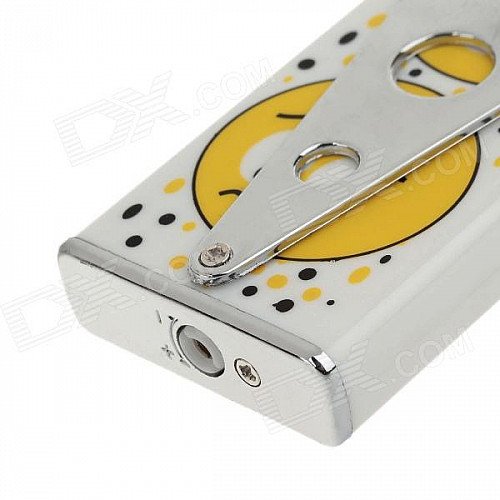 6127 Stylish Smile Face Pattern Butane Jet Lighters Shock Tricky Toy - White + Yellow + Silver