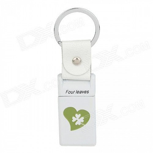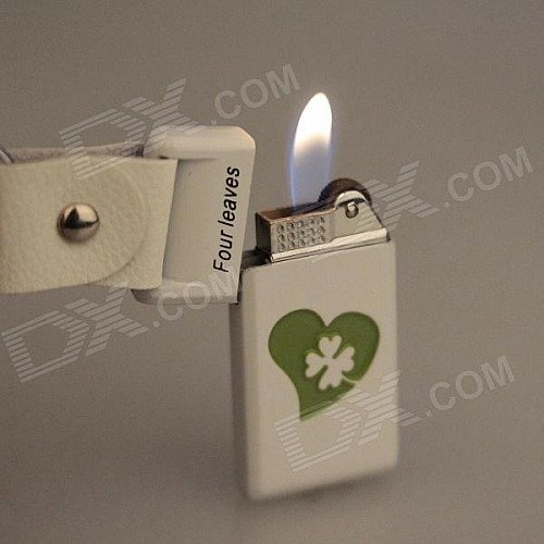 6530 Four Leaves Zinc Alloy Gas Lighter w/ Keyring - White